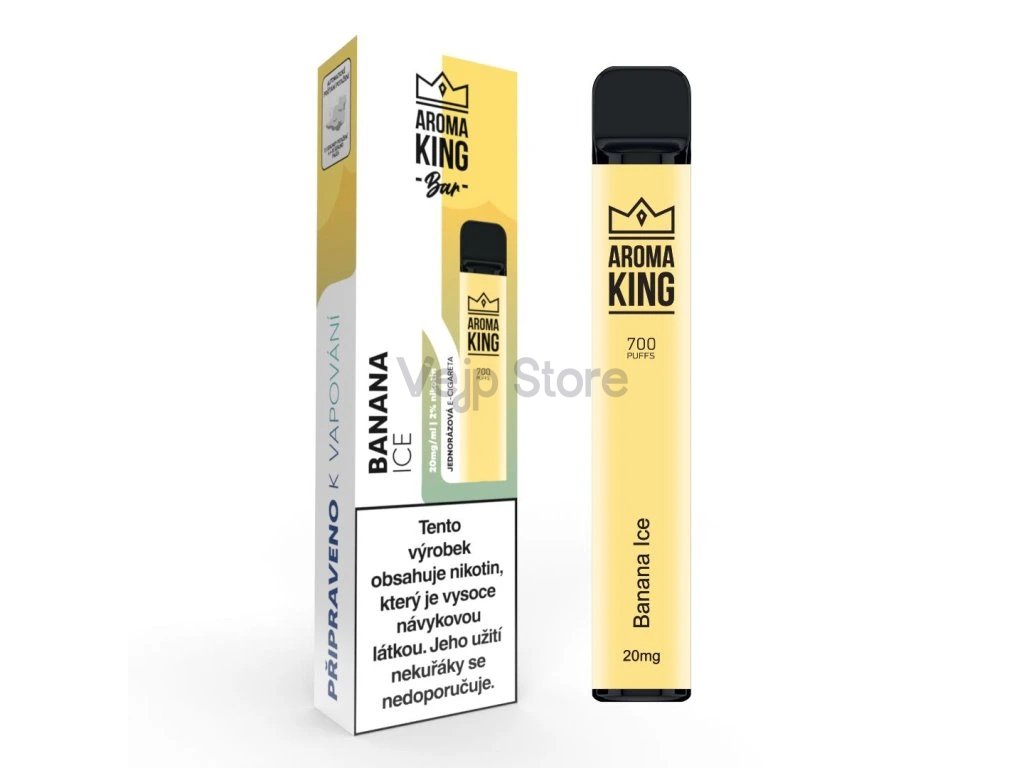 Jednorázová e-cigareta Aroma King Classic 700+ Banana ice je příchuť kombinující osvěžující chuť zralého banánu se svěžím ledovým efektem.