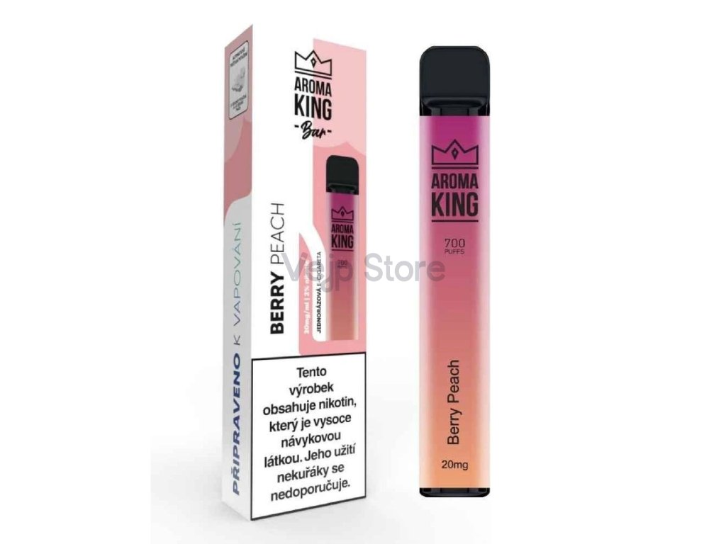 Jednorázová e-cigareta Aroma King Classic 700+ Berry Peach je příchuť kombinující dokonalý mix bobulovitých plodů v kombinaci s prvotřídní chutí zralých broskví.