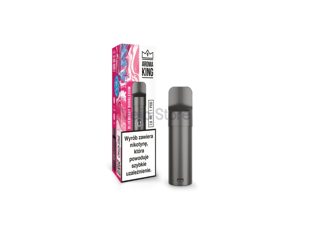 Náhradní předplněná cartridge (POD) pro elektronickou cigaretu Aroma King Classic s příchutí Blueberry Bubblegum. Vychutnejte si nostalgickou a sladkou kombinaci šťavnatých borůvek a klasické žvýkačky.