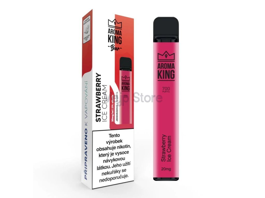 Jednorázová e-cigareta Aroma King Classic 700+ Strawberry ice Cream. Kdo by neznal chuť poctivé jahodové zmrzliny? Každý potah je plný chuti čerstvých jahod spojených s krémovou zmrzlinou.