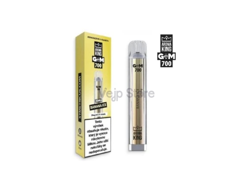 Jednorázová e-cigareta Aroma King Gem Bar 700 Banana Ice se sladkou chutí zralých banánů a ledově svěžími tóny.
