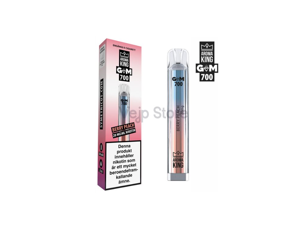 Jednorázová e-cigareta Aroma King Gem Bar 700 s příchutí Berry Peach spojuje šťavnaté tóny lesního ovoce s jemností sladké broskve. Tato kombinace vytváří jedinečnou chuť, která potěší všechny, kteří touží po plném a sladkém zážitku při každém potahu.