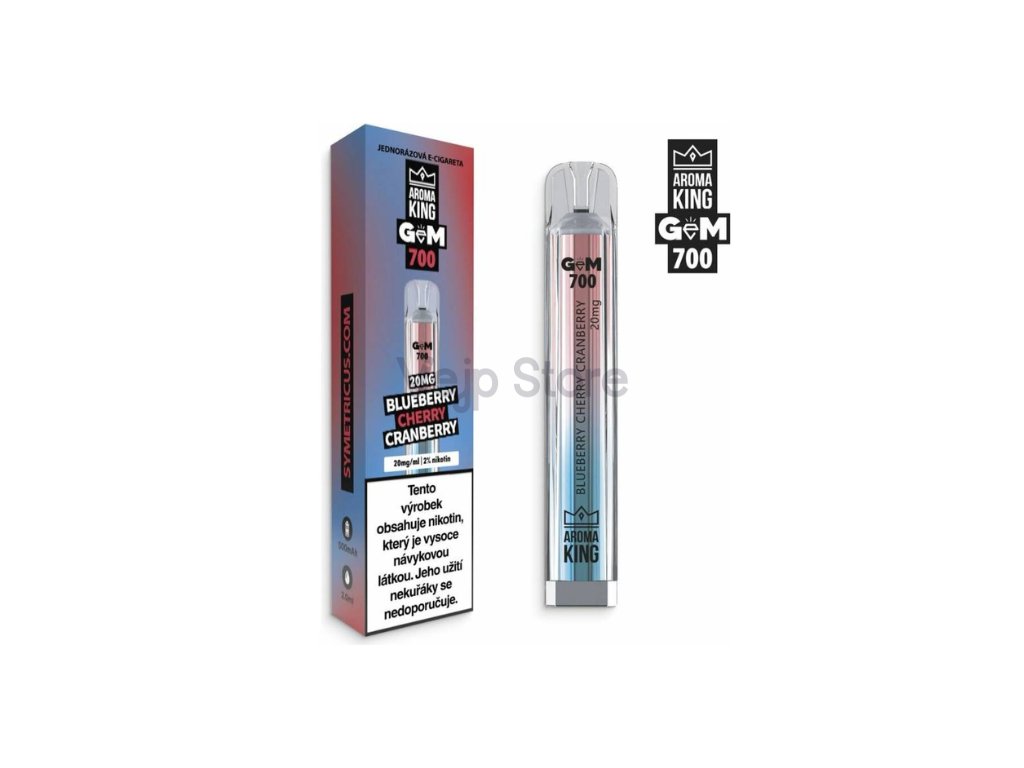 Jednorázová e-cigareta Aroma King Gem Bar 700 s příchutí Blueberry Cherry Cranberry spojuje sladkou chuť borůvek a třešní s jemně kyselými tóny brusinek. Tato kombinace vytváří jedinečnou chuť, která potěší všechny, kteří touží po plném a ovocném zážitku při každém potahu.