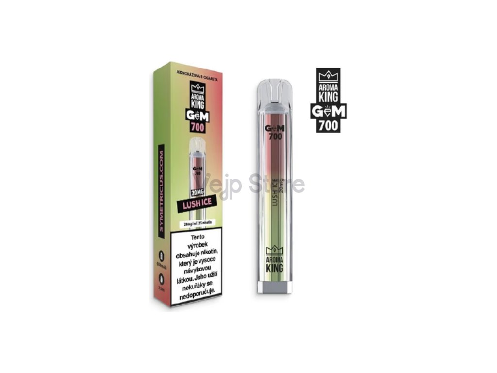 ednorázová e-cigareta Aroma King Gem Bar 700 Lush Ice se sladkou chutí vodního melounu a ledově svěžími tóny.