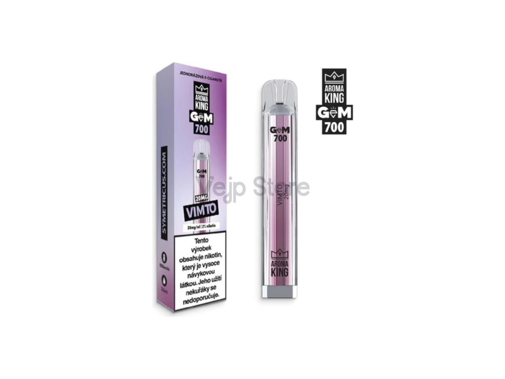 Jednorázová e-cigareta Aroma King Gem Bar 700 Vimto s nezaměnitelnou chutí směsi tmavých hroznů, malin a černého rybízu.