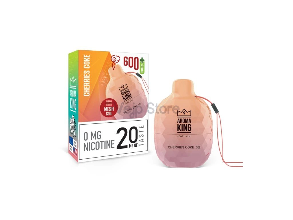 Jednorázová e-cigareta Aroma King Jewel Mini 600 Cherries Coke kombinuje klasickou chuť Coly se šťavnatými třešněmi a vytváří tak jedinečnou a nezapomenutelnou směs.