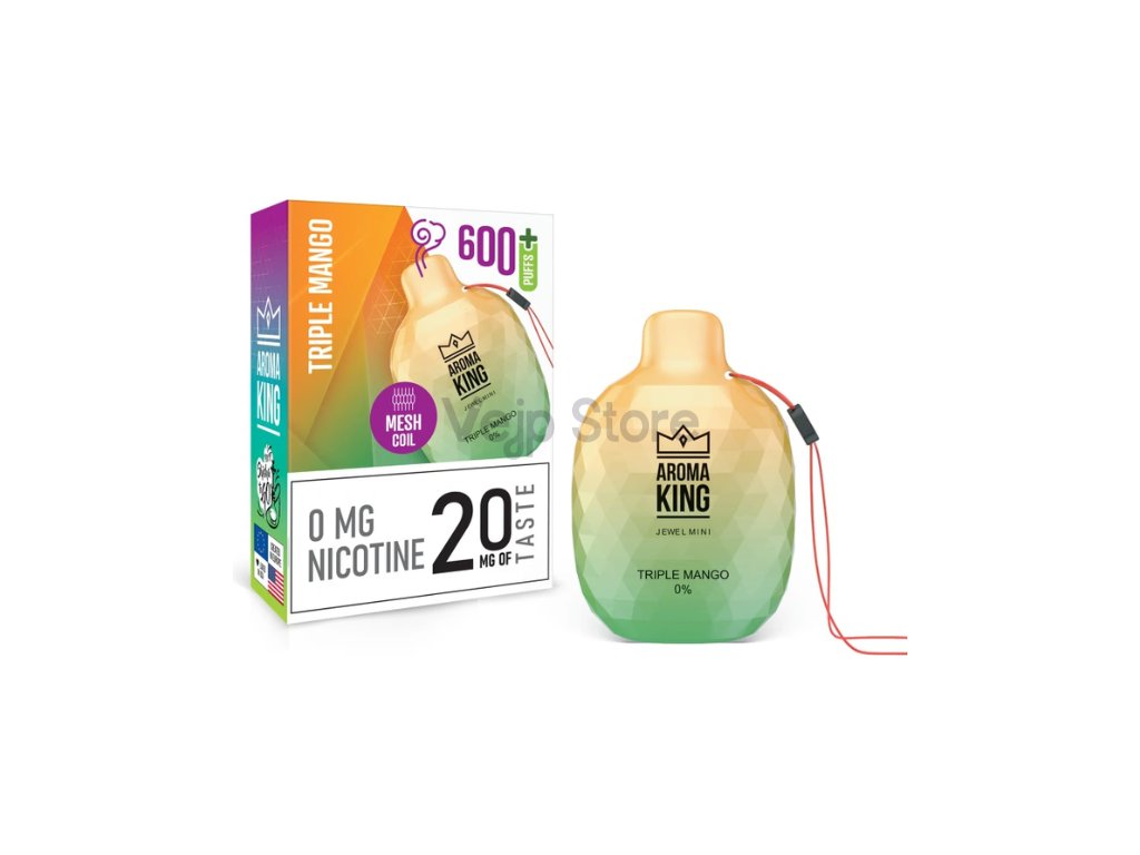Jednorázová e-cigareta Aroma King Jewel Mini 600 Triple Mango přináší osvěžující chuť Manga. Tato příchuť vytváří příjemně sladký zážitek s letním nádechem.