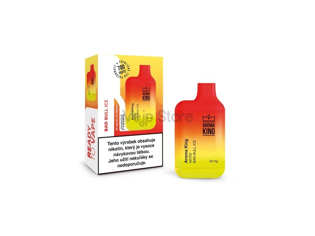 Jednorázová e-cigareta Aroma King Mini 700 s příchutí Bad Bull nabízí pořádnou nálož poctivého energetického nápoje, který je navíc ledově vychlazený.
