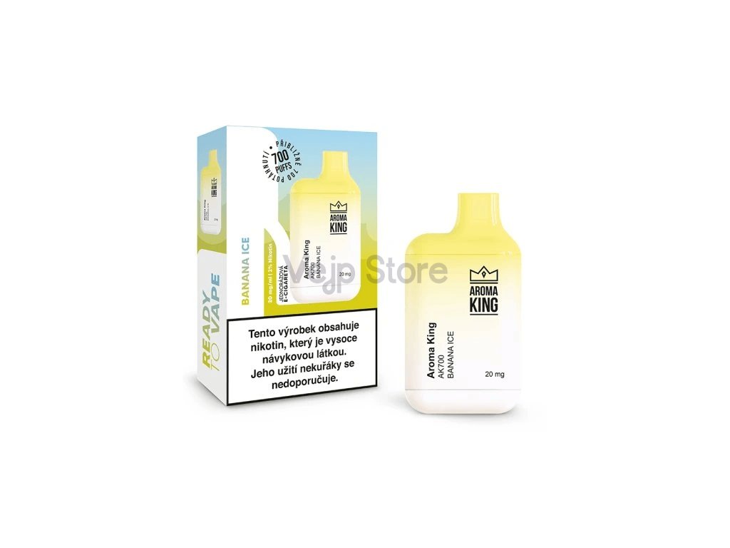 Jednorázová e-cigareta Aroma King Mini 700 s božskou příchutí banánů! Obohaťte své chuťové buňky sladkou a svěží příchutí Banana Ice, která je jednou z nejoblíbenějších v této řadě Aroma King.