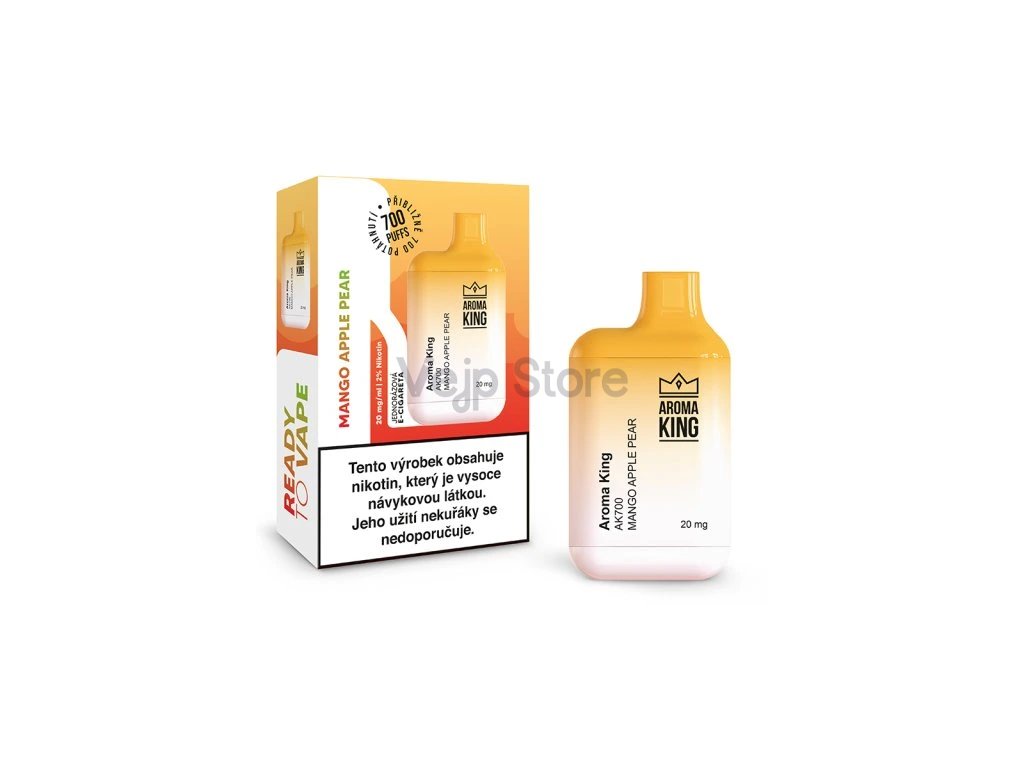 Jednorázová e-cigareta Aroma King Mini 700 obsahuje autentickou chuť sladkého manga, které dodává příchuti exotický nádech. Jablko přidává do směsi svěžest a kyselost, která skvěle kontrastuje s mangem. Hruška doplňuje celkový profil chutí jemností a sladkostí.