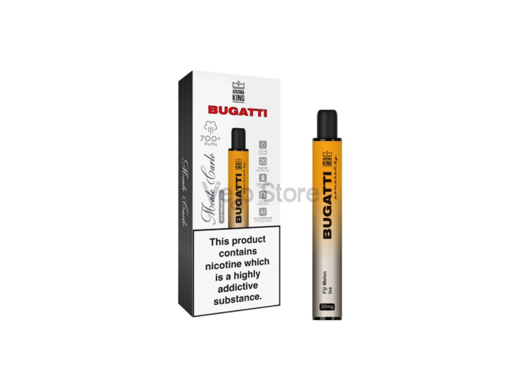 Jednorázová e-cigareta Aroma King Bugatti Monte Carlo Fiji Melon. Exotická a sladká chuť šťavnatého melounu, která nikdy neomrzí.