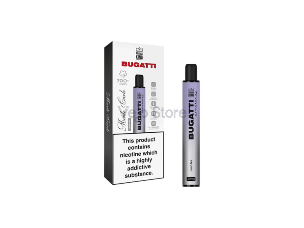 Objevte jednorázovou e-cigaretu Aroma King Bugatti série Monte Carlo. Tato značková e-cigareta přináší kombinaci exkluzivity, stylu a požitku. Díky svému propracovanému designu a kvalitě nabízí jedinečný zážitek z vapování. E-cigareta Bugatti je skutečným králem, protože vydrží více než 700 plnohodnotných potahů, což z ní činí spolehlivého společníka na cestách i v každodenním životě.